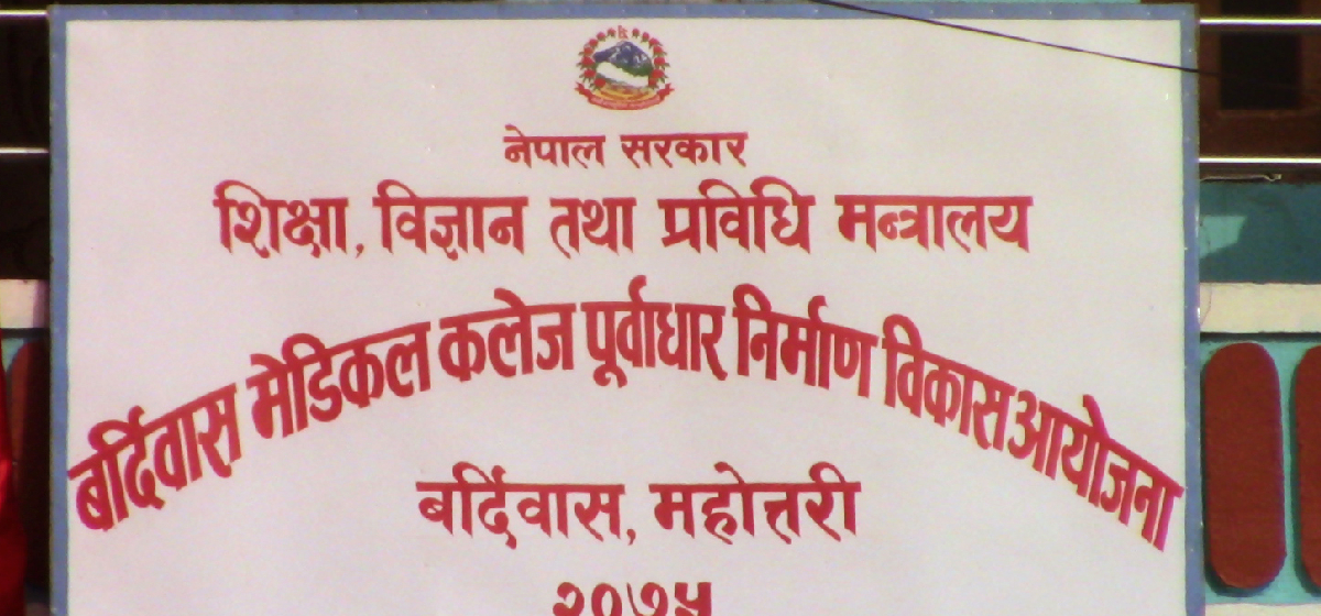 महोत्तरी- मधेसको बर्दिवासमा मेडिकल कलेज बन्ने करिब एक दशकको सपना साकार हुने आस जागेको छ । आर्थिक वर्ष २०७४/७५ मा सङ्घीय सरकारको बजेटमा सम्बोधन गरिएपछि सँगालिएको बर्दिबास मेडिकल कलेज निर्माणको सपना करिब एक दशकपछि आसलाग्दो गरी गति लिएपछि नगरक्षेत्रमा उत्साह बढेको हो ।